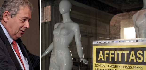 Nella foto: il prof. Mannheimer e un negozio vuoto
