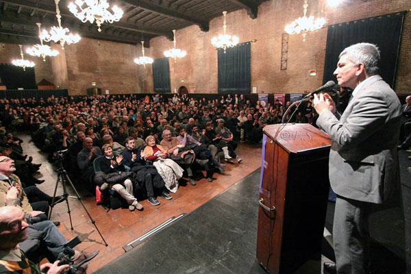 Riempie il Cittanova Nichi Vendola, leader di Sinistra Ecologia e Libertà, presidente della regione Puglia e capolista nella circoscrizione Lombardia 3. In tanti si sono accalcati nel palazzo di corso Garibaldi, seduti per terra o in piedi appena fuori dalla porta perché le poltroncine blu erano già tutte occupate. “Cambiare il punto di vista”, il motto di Vendola, accolto da un applauso tra i candidati cremonesi di Sel seduti in fila accanto a lui sul palco. “Sui nostri manifesti non abbiamo scritto ‘bentornata sinistra’ – ha esordito Vendola -, ma ‘benvenuta sinistra’ perché la sinistra non è una mummia, è un movimento che spinge verso l’emancipazione e la liberazione, è la scoperta di un mondo, è un punto di vista”. Confrontando i “paracadutati nelle liste del Pdl” e il discorso del presidente americanos Obama per il suo insediamento, Vendola ha tracciato la sua idea di politica, “concepita come una missione che è capace di indicare orizzonti per le nuove generazioni e di dare dei compiti alla classe dirigente, politica come autopedagogia, ovvero educare noi stessi alla complessità”. Poi, il giudizio su Monti (“E’ il mio avversario – ha detto il leader di Sel – l’avversario che vorrei, meglio del populismo che guarda più a Ruby che alle sue coetanee costrette alla precarietà”) e su Berlusconi (“Non ci si deve stupire che Berlusconi sia tornato, anche aiutato dall’anti-berlusconismo alla Travaglio. E’ tornato perché il ‘berlusconismo’ non è stato solo burlesque, ma una vera e propria rivoluzione che a colpi di populismo e liberismo ha fatto regredire il paese da un punto di vista civile e sociale. Regresso nella scuola, nel lavoro, nell’educazione oggi gestita dalla tv commerciale, nei rapporti individuali). Infine, il monito al Pd: “La sinistra – ha concluso Vendola – non deve commettere l’errore di cercare di imitare Berlusconi, dicendo per esempio ‘non metteremo le mani nelle tasche degli italiani’, ma deve giustificare il fisco garantendo la qualità dei servizi e soprattutto che chi più ha, più deve dare. La nostra ambizione non è quella di comandare, ma di governare, cambiando il punto di vista, la visione del mondo”.