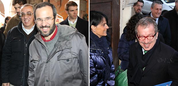 Sopra, Ambrosoli e Maroni a Cremona (foto Sessa)