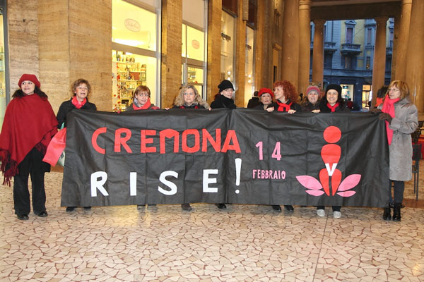 Almeno una donna su tre nel mondo ha sofferto o soffrirà violenza nel corso della sua vita, e questo, in una popolazione che cresce veloce verso i 7 miliardi, significa un miliardo di donne: e’ partendo da questo tema che l’organizzazione V-Day, fondata da Eve Ensler, per oggi, San Valentino, ha atteso nelle piazze e nelle strade di tutto il mondo un miliardo di donne e di uomini per ballare per le strade “per fermare la violenza sulle donne”. E’ il 15esimo anniversario della nascita di V-Day, che lavora in tutto il mondo per promuovere la dignita’ della donna attraverso il contatto con le singole realta’. A Cremona l’iniziativa, che è stata organizzata in Galleria XXV aprile, ha riscosso molto successo. L’evento ha visto una danza collettiva della durata di qualche minuto in segno di protesta contro la violenza sulle donne e di impegno a contrastarla.