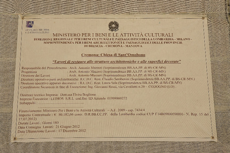 Terminata con successo la prima fase del restauro della chiesa di S.Omobono, dalla cui facciata sono stati tolti i ponteggi dopo circa 9 mesi di lavori realizzati dall’impresa Lythos di Venezia e coordinati dalla Soprintendenza di Brescia attraverso l’architetto Antonio Mazzeri. I lavori hanno riguardato in primo luogo la statica dell’edificio, con l’ancoraggio della facciata alla navata retrostante e il consolidamento dei due pinnacoli che da tempo erano fuori asse. Oggi è notevole l’impatto visivo della facciata ripulita e spiccano in particolare le due statue contenute nelle nicchie simmetriche al portale, raffiguranti l’una il patrono S. Omobono, l’altra uno dei vescovi cremonesi Imerio o Sicardo. Le avevamo viste fino alla scorsa estate imbrattate dai piccioni e dallo smog. Ora sono tornate a risplendere e catturano l’attenzione anche del passante più distratto. Costituiscono in effetti le componenti più antiche della facciata, databili al XIII secolo e realizzate in marmo rosa di Verona. Il loro restauro è stato eseguito con metodologia laser e nelle intenzioni – illustrate ad avvio lavori dal responsabile dei Beni Culturali della Diocesi, Mons. Achille Bonazzi – se ne voleva approfondire la tecnica scultorea attraverso indagini in fluorescenza rx.