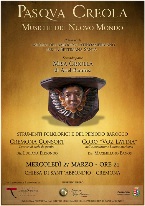 Il concerto sarà diviso in due parti; nella prima parte verranno eseguite musiche del barocco latinoamericano dedicate alla settimana santa. Nella seconda parte verrà eseguita la Misa Criolla di Ariel Ramirez.