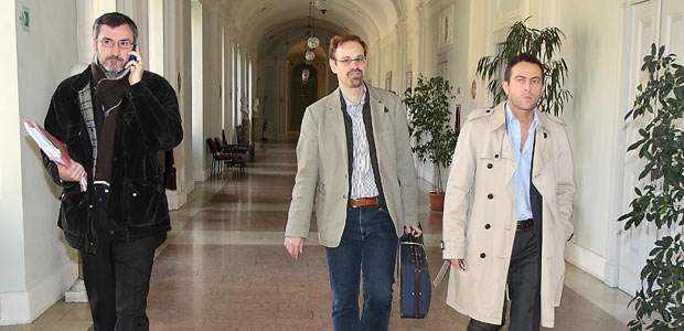 In alto, da sinistra, gli avvocati Marco Sbrocca e Marco Marianello per il maestro Bianchi, e l’avvocato Enrico Cistriani per il comune di Cremona (foto di Francesco Sessa)