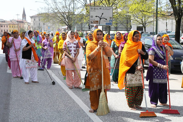 Puntuali, migliaia di indiani provenienti da tutta la provincia e da quelle limitrofe, dunque, si sono ritrovati verso le 14 nel piazzale della Croce Rossa per poi incamminarsi lungo il percorso che da via Tofane li ha condotti verso porta Romana, via santa Maria in Betlem, via Cadore, via del Sale e ritrovarsi quindi al parco del Po, per iniziare la festa vera e propria. Una tradizione che si ripete ormai da alcuni anni nel capoluogo di una provincia che è tra le mete preferite dei Sikh, e dove, a Pessina Cremonese si trova il tempio più grande d’Europa.