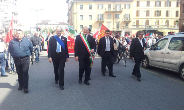 E’ partito da piazza San Luca attorno alle 10,30 il corteo per la Festa della Liberazione, dopo la celebrazione al Civico Cimitero. In tanti per il tradizionale appuntamento in città, che ha visto la partecipazione delle associazioni partigiane, degli studenti e di molte autorità. Corso Garibaldi, corso Campi, via Verdi, piazza Stradivari, via Baldesio con accompagnamento del Complesso Bandistico di Cremona. Fino a piazza Duomo per gli interventi di Perri, Agazzi, Scotti della Divisione Acqui Cremona, Mariella Laudadio, presidente Anpi Cremona, Angelo Rescaglio, presidente Anpc Cremona, Martina Stanga, presidente Consulta degli Studenti.