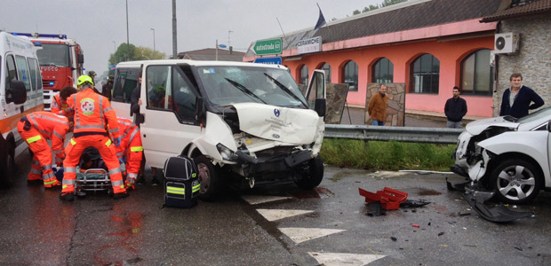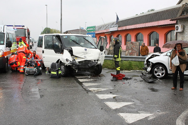 Incidente intorno alle 15 lungo la via Giuseppina all’incrocio con la strada che porta a Malagnino. Coinvolti un furgone dell’Istituto Ospedaliero di Sospiro con a bordo pazienti in cura al reparto psichiatrico e due automobili, una proveniente da Malagnino, l’altra da Pieve d’Olmi. In undici sono rimasti feriti, la maggior parte in modo lieve. Solo una persona è stata trasportata in codice rosso all’ospedale. Sul posto, oltre ai sanitari, i vigili del fuoco e polizia stradale . Sembra che la causa dello scontro sia una mancata precedenza.