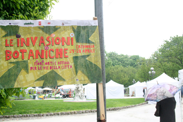 AGGIORNAMENTO – Invasioni Botaniche un po’ sfortunate per via della pioggia che è caduta a Cremona nel fine settimana. Nonostante il tempo, via vai di gente sia sabato che domenica (giornata che ha visto il sole splendere nella mattinata). In piazza Roma stand di piante e fiori, di attrezzature per il giardinaggio, di prodotti culinari. Sotto la Galleria XXV Aprile, giocolieri e percussionisti a movimentare e colorare la giornata. Buon flusso di gente anche in corso Garibaldi e in corso Campi dove è stata allestita una vera e propria distesa di fiori. Poche le vetrine addobbate da parte dei commercianti. ‘E’ l’edizione zero – ha detto Paolo Mantovani delle Botteghe del Centro – Abbiamo avuto poco tempo per organizzarci, ma sapremo fare meglio il prossimo anno”.