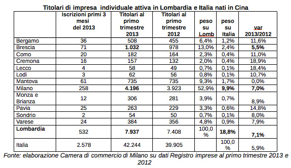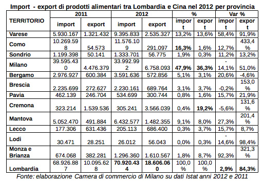 Boom di esportazioni verso la Cina. Rapporti economici sempre più importanti e prodotti alimentari italiani e cremonesi sempre più diffusi sulle tavole del paese orientale. Sono inoltre quasi 8mila le imprese individuali con titolare cinese nell’area lombarda, il 18,8% delle imprese cinesi attive in Italia, in crescita del 7,1% in un anno. Si concentrano a Milano (4.196 imprese, 9,9% nazionale, +7%) e Brescia (1.032, +5,5%). Nel territorio cremonese al primo trimestre 2013 ne risultano 157 (con una crescita del 18,9% rispetto al primo trimestre 2012).