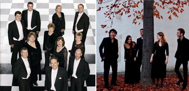 Sopra, i Tallis Scholars e gli artisti dell’Aura rilucente