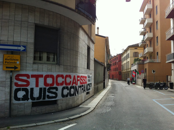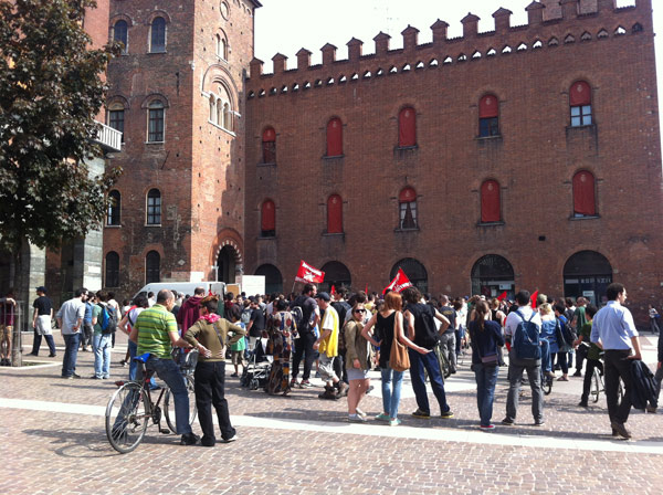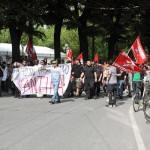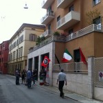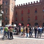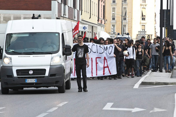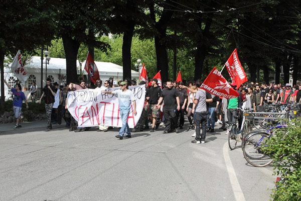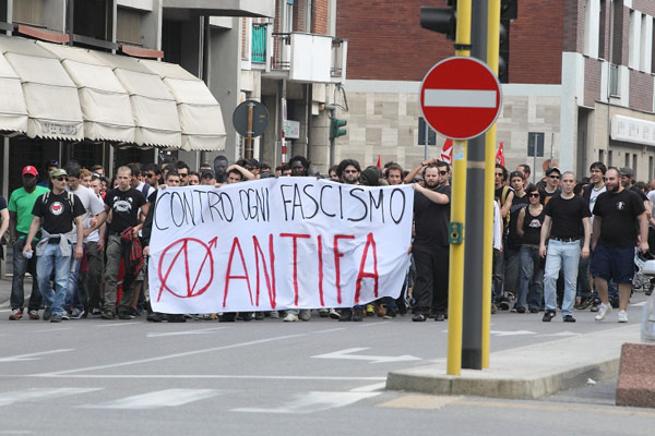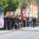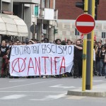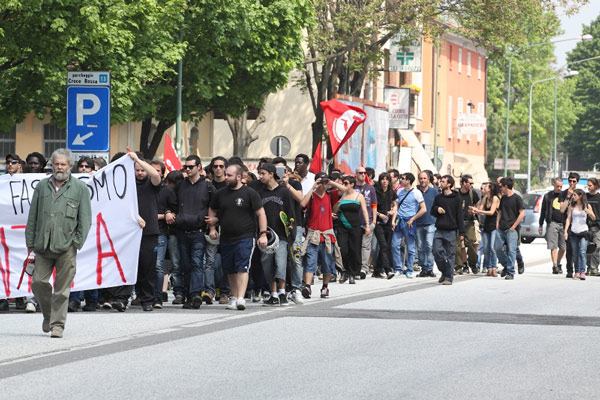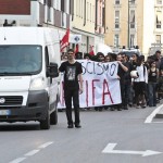 Un sabato blindato, quello vissuto oggi a Cremona, per la manifestazione di protesta organizzata dai rappresentanti dei centri sociali contro gli antagonisti di Casa Pound che nel primo pomeriggio hanno inaugurato la loro sede di via Geromini 30. Nessuno scontro fisico: le due fazioni, grazie all’organizzazione delle forze dell’ordine, non sono mai venute a contatto. Solo sfottò, slogan antifascisti e qualche momento di tensione che si è registrato all’incrocio tra via Geromini e largo Paolo Sarpi. In quel punto i rappresentati dei centri sociali, muniti di caschi e bastoni, hanno lanciato qualche fumogeno all’indirizzo degli antagonisti, che tra saluti fascisti e brindisi stavano festeggiando l’inaugurazione della loro nuova sede. L’imponente cordone delle forze dell’ordine, però, ha impedito che si andasse oltre le parole. Lungo il tragitto verso piazza Stradivari, il corteo dei centri sociali ha tappezzato di scritte buona parte di via Manzoni, tutto sotto gli occhi sconcertati dei residenti che dai balconi e dalle terrazze stavano assistendo al passaggio del corteo antifascista. Imponente il servizio d’ordine di polizia e carabinieri, in tutto un centinaio di uomini, dalla mattinata schierati nei punti nevralgici interessati dal passaggio degli aderenti ai centri sociali. E, ovviamente, presidi fissi di polizia, uomini della Digos, carabinieri e vigili urbani in via Mantova, in via Geromini, via Dante e viale Trento e Trieste. Sul posto, a coordinare gli uomini in divisa, il questore Antonio Bufano accompagnato dai suoi dirigenti Nicola Lelario, Angelo Lonardo e Giovanna Sabato. Presenti anche il maggiore dei carabinieri Rosario Gemma, il maresciallo Angelo Foglia e per i vigili urbani il comandante Fabio Ballarino Germanà, accompagnato dall’assessore Francesco Bordi e dal vice comandante Pierluigi Sforza. L’inaugurazione della sede di Casa Pound era prevista per le 14, ma già dalle 13 i centri sociali si sono radunati davanti al Dordoni da dove è partito il corteo scortato dalle forze dell’ordine. Gli aderenti dei centri sociali, con a capo il leader storico Mario Bini, hanno percorso un tratto di via Dante, per poi attraversare viale Trento e Trieste e arrivare in largo Paolo Sarpi proprio nel tratto che incrocia via Geromini. Qualche momento di tensione, e poi il corteo ha percorso via Manzoni, lasciandosi dietro numerose scritte antifasciste e dai contenuti discutibili: ‘Marò assassini’, ’10,100,1000 Preiti’ (l’autore della sparatoria davanti a palazzo Chigi a Roma), ‘Fascisti al rogo’, ‘No Casa Pound’. La manifestazione si è poi spostata in piazza Stradivari, dove, oltre a Mario Bini, hanno preso il microfono alcuni esponenti dei centri sociali che hanno chiesto a gran voce alle autorità la chiusura della sede di Casa Pound. Verso le 17 il corteo è tornato in via Mantova attraverso corso Matteotti. I numeri della giornata: 250 i rappresentanti dei centri sociali, un centinaio quelli di Casa Pound. Non era presente il fondatore e presidente nazionale del movimento di estrema destra Gianluca Iannone, impegnato nella campagna elettorale a Roma.