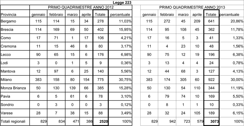 La crisi economica continua a colpire l’area metalmeccanica lombarda e a ridurre i posti di lavoro. Secondo i dati delle liste di mobilità compilate dai centri per l’impiego delle diverse province, nel primo quadrimestre del 2013 in tutta la Lombardia hanno perso il posto quasi 3.100 persone impegnate nel settore (si parla in questo caso della legge 223, cioè della aziende oltre i 15 dipendenti). Un numero che rappresenta il 18% in più dei posti persi nel primo quadrimestre del 2012, quando i licenziati erano arrivati a essere 2500 circa. L’allarme viene lanciato dalla Fiome regionale attraverso una sua elaborazione. La provincia più colpita è quella di Milano, con 922 licenziamenti, il 30% del totale. Seguono Bergamo (641, quasi il 21% del totale), Brescia (362, il 12% circa), Monza e Brianza (344, l’11%). A Cremona i licenziamenti sono stati 48 fra gennaio e aprile; si registra un calo, anche se i numeri non sono ancora incoraggianti: erano infatti 80 nello stesso periodo del 2012. Questi i dati delle altre province nel primo quadrimestre 2013: Como 41 licenziamenti, Lecco 196, Lodi 24, Mantova 127, Pavia 169, Sondrio 10, Varese 189.