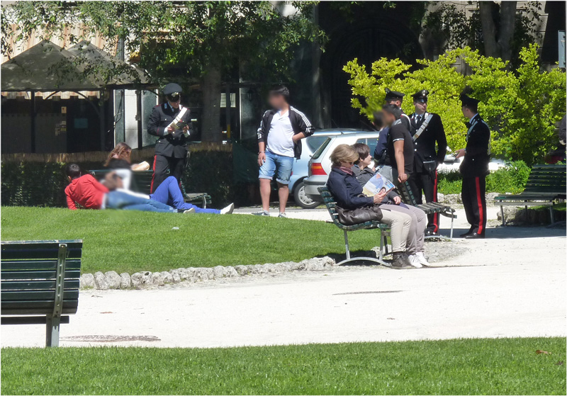 Carabinieri in azione nel pomeriggio ai giardini pubblici di piazza Roma. Militari impegnati in un’operazione di controllo e verifica con l’obiettivo di garantire una maggiore sicurezza ai cittadini. All’interno dei giardini – molto frequentati da famiglie e gruppi di ragazzi, sia italiani che stranieri, alla luce del bel tempo che ha caratterizzato la domenica – i carabinieri hanno effettuato monitoraggi spondandosi a piedi da un’area all’altra. Controlli su diverse persone, invitate a fornire documenti d’identità, e verifiche scrupolose in tutta la zona. Sempre più frequenti, con l’arrivo della stagione estiva, i passaggi delle forze dell’ordine nelle aree verdi della città e della provincia. Un segnale importante, un ottimo deterrente per prevenire fenomeni di microcriminalità.