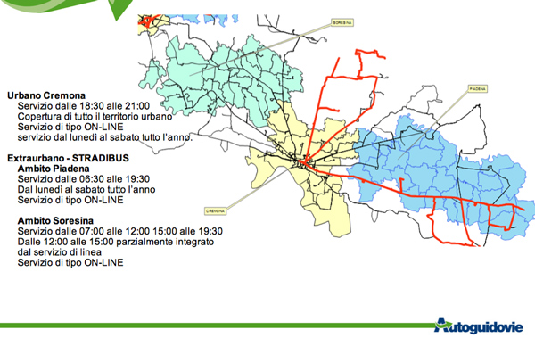 11mila studenti trasportati ogni giorno, 17mila lavoratori. In tanti sono interessati alla rivoluzione del servizio per il Trasporto Pubblico Locale, in vigore dal 10 giugno e presentato alla stampa nel corso di una conferenza stampa in Provincia. Un unico contratto a livello provinciale per offrire un servizio più razionale ed efficiente. Il servizio è stato aggiudicato a un’associazione temporanea di imprese (Ati) costiyuita da Autoguidovie, Miobus, Km, Line e Star e interessa un volume di traffico annuale pari a 9,8 milioni buskm suddivisi in 8,2 per il bacino provinciale, 1,3 per l’urbano di Cremona e 0,3 per il servizio urbano di Crema. Queste le principali caratteristiche: nessuna razionalizzazione per i percorsi che interessano lavoratori e studenti, servizi a chiamata nelle fasce “morbide”, ovvero meno frequentate, rete georeferenziata ossia monitoraggio costante sulle corse, parco mezzi rinnovato con 92 nuovi autobus in 8 anni per un investimento da 20 milioni di euro, tecnologie a bordo (videosorveglianza, sms informativi e wi-fi nelle stazioni di Cremona e Crema). In più, verranno incrementati i mezzi con dotazioni atte all’incarrozzamento per le persone disabili o con ridotta capacità motoria e tutte le linee avranno un numero identificativo composto da K più un numero. Da maggio, verranno introdotti titoli di viaggio con rinnovata grafica e dal 1° gennaio sarà attivo un call center unico per tutti i servizi con ampliamento dell’orariuo di servizio e un numero verde per le chiamate da rete fissa.