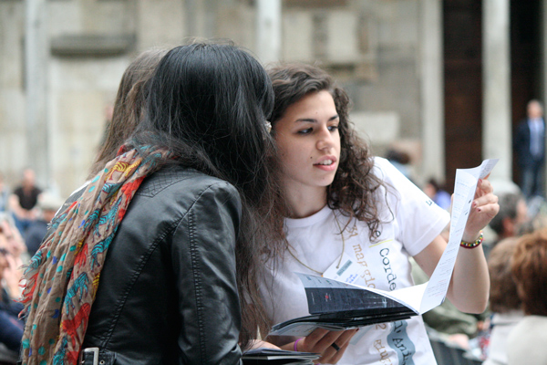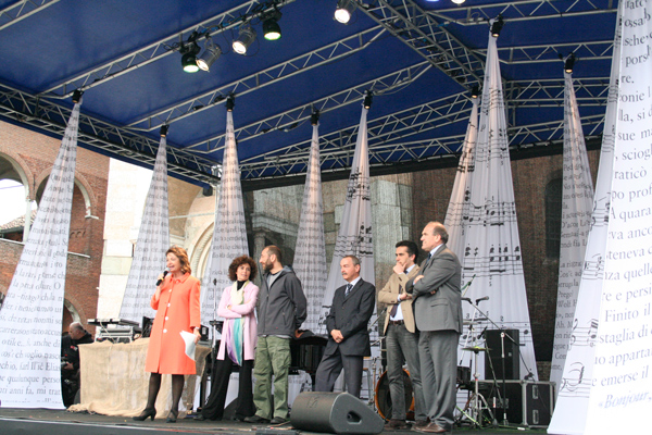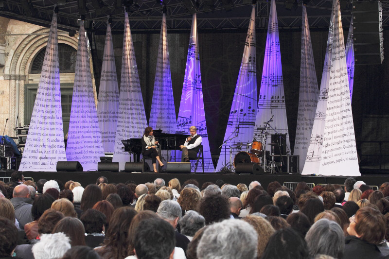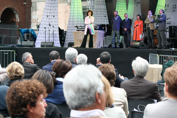 Evento della serata con piazza del Duomo stracolma, l’incontro tra la giornalista Daria Bignardi e il maestro Uto Ughi.