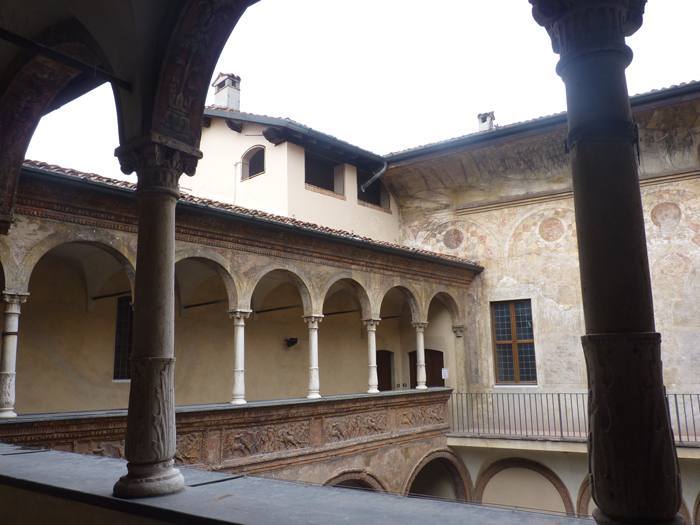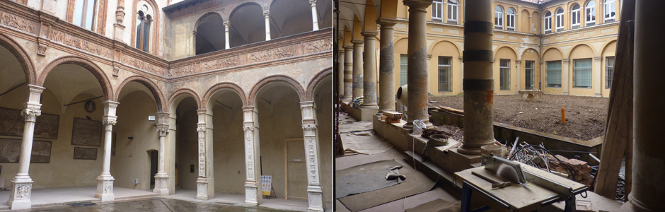 Lavori ancora in corso – realizzati da New Edil per la parte edile, Sime per quella elettrica e Chizzoni per gli impianti termoidraulici – nella parte settecentesca dell’edificio, attorno al chiostro del convento (prima del Monte qui c’erano le suore di S. Maria di Valverde). Al primo piano, lato verso vicolo Fodri, entrerà il coro Costanzo Porta, a cui potrebbero aggiungersi corsi di strumento musicale. In pratica è la vecchia sala ricevimenti del circolo di palazzo Fodri. Un ascensore consentirà l’accesso al piano. La parte interna del chiostro porticato verrà sistemata a giardino e il piano terra si presta ad uso di bar- ristorante. Ma per i restanti due lati del chiostro e per tutta l’ampia superficie dove si era installata la sede principale della ex Cariplo, si è ancora in attesa di inquilini. Come pure, nella parte più antica, restano per ora sfitti i locali occupati da ultimo dalla Triennale strumenti ad arco, ora confluita nel Museo del Violino.