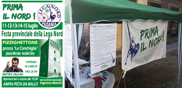 La segreteria provinciale della Lega ha organizzato la tradizionale Festa del Carroccio sul territorio. Come l’anno scorso, la manifestazione si terrà presso il caratteristico locale La Conchiglia in Gera, Pizzighettone, nelle cinque serate di giovedì 11,venerdì 12, sabato 13, domenica 14 e lunedì 15 luglio. Cucina nostrana, bar e musica. Ospite d’eccezione venerdì 12 luglio alle ore 21 Matteo Salvini, attuale segretario della Lega Lombarda.