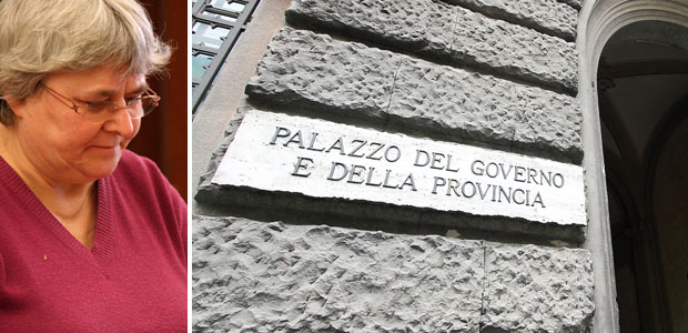 Sopra, Maria Rosa Zanacchi e l’edificio della Provincia