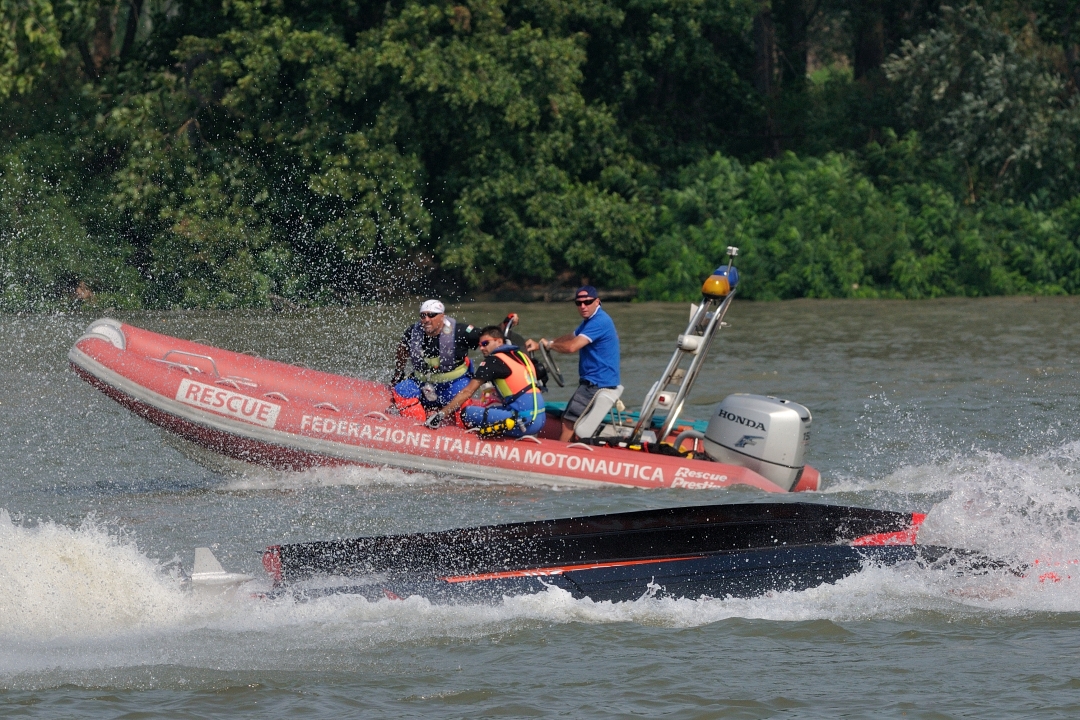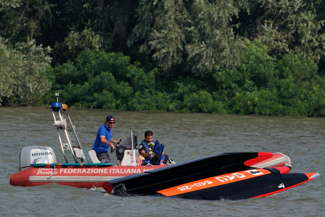 Incidente per un pilota della Mac di Cremona nel corso del 12esimo Gran premio Motonautico del Po, in corso nell’area di San Nazzaro. In mattinata Enrico Politi, dell’associazione cremonese, si è ribaltato con il suo bolide durante la gara del campionato italiano F2. Qualche attimo di paura per i presenti ma fortunatamente non ci sono state gravi conseguenze per il pilota della Mac (residente a Roccabianca, in provincia di Parma): se l’è cavata con alcune botte.