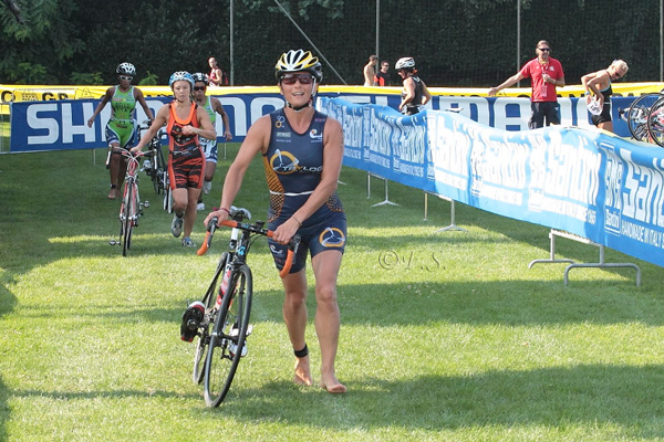 Nella sfida femminile grandi emozioni. Elisa Battistoni (707), Ilaria Zane (Cus Trento) e Cecilia Zanlungo (Pianeta Acqua) hanno preso il comando dopo il nuoto ed in bici hanno composto il terzetto di testa; alle loro spalle lavoro di squadra delle atlete dello Stradivari Sara Tavecchio e Sara Dossena. Quest’ultima ha fatto valere le sue ottime qualità podistiche e nei 5km ha dapprima recuperato sulle tre battistrada e quindi ha preso il largo, vincendo con il tempo di 1h03’10” ed un vantaggio di quasi un minuto su Ilaria Zane e di 1’33” su Elisa Battistoni.