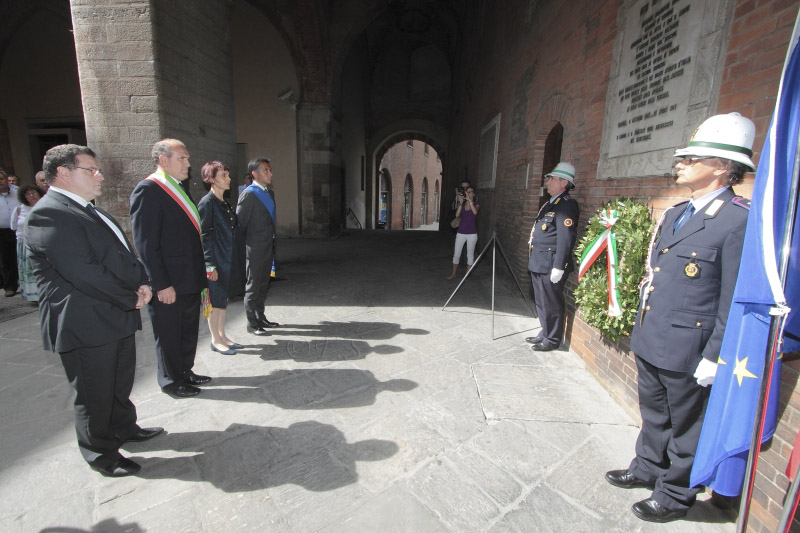 ci troviamo qui, di fronte alla lapide che ricorda i Caduti della Resistenza ed i Martiri di Cefalonia, a 70 esatti anni dall’8 settembre 1943, quando venne annunciato alla Nazione, attraverso un radiomessaggio, dal Capo del Governo, Pietro Badoglio, l’armistizio firmato il 3 settembre di quell’anno. L’8 settembre 1943 sancì il crollo nella sconfitta e nella resa di qual disegno di guerra che aveva legate l’Italia alla Germania nazifascista. Segnò uno dei momenti più difficili della nostra storia nazionale unitaria, ma rappresentò anche una delle prove più grandi della forza vitale della nostra patria.