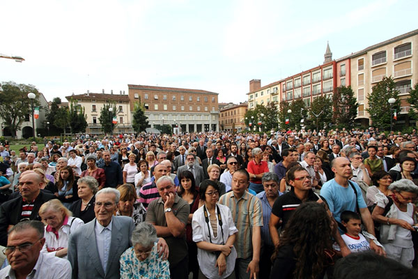 “Due anni fa c’era un buco – ha detto il sindaco Oreste Perri da palco, davanti ad una piazza gremita – Grazie ad Arvedi adesso abbiamo il tempio dell’eccellenza di Cremona. Un sogno che è diventato realtà. Un cambiamento, una svolta per il futuro della città”. “Il Museo e la piazza – ha detto il cavaliere Giovanni Arvedi – sono nati dalla volontà di lasciare a Cremona un ricordo della nostra famiglia che qui vive e lavora da molti, moltissimi anni. Inaugurare il Museo è mantenere aperta la porta della storia della cultura, di un’arte, quella degli strumenti ad arco, una magica creazione mai eguagliata e superata nel tempo”. “Cremona – ha proseguito il vicepresidente della commissione europea Tajani – con il suo Museo del Violino deve essere inserita nei circuiti culturali europei e deve far parte di Expo 2015″. “Questo Museo – ha detto al microfono Cristina Cappellini, assessore alla cultura della Regione – è al centro di un percorso che va oltre Cremona e oltre la Lombardia. Sono orgogliosa, anche da soncinese, dunque del territorio, perché questa iniziativa è un esempio della cultura come motore della crisi”.