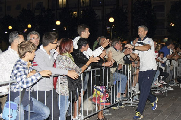 Gli atleti della nuova stagione della Vanoli Basket si sono presentati alla cittadinanza questa sera in piazza Marconi. A sfilare, la prima squadra e anche i ragazzi del settore giovanile degli ospiti speciali. Un team composto da volti nuovi, come l’americano Curtis Kelly, ma anche da veterani. Per il quinto anno consecutivo si affronta la serie A. Alle 19 la festa ha preso il via con un’esibizione di baskin, dopodiché la nuova squadra targata Vanoli si è presentata sul palco. Presenti le autorità cittadine. Ospite, il cantante argentino Edwyn Roberts, lanciato dal programma “Amici”, figlio di un liutaio argentino trapiantato a Cremona e grande tifoso della Vanoli. L’avventura in serie A sta per cominciare, e i tifosi non aspettano altro che applaudire i loro beniamini.
