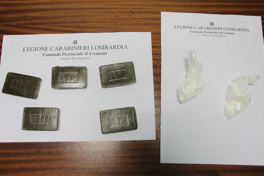 AGGIORNAMENTO – I carabinieri hanno arrestato un cittadino marocchino, bloccato mentre stava trasportando in auto 500 grammi di hascisc e 100 di cocaina, droga destinata prevalentemente al mercato cremonese secondo i militari e nascosta nel vano batteria (nel caso dell’hascisc) e nell’imbottitura di uno schienale dell’abitacolo (nel caso della polvere bianca, alto il livello di purezza). L’accusa è di detenzione ai fini di spaccio.