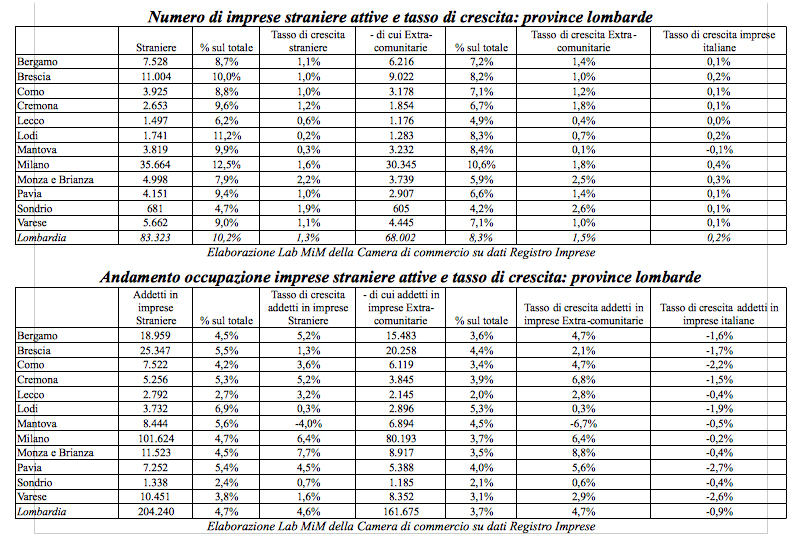 Le imprese straniere aumentano in un anno soprattutto a Monza, Sondrio, Milano e Cremona e mostrano un tasso di crescita decisamente superiore a quello delle imprese con controllo o con titolare italiano.