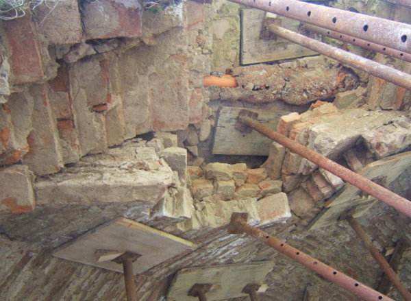 L’intervento di recupero strutturale della terrazza consiste essenzialmente in due particolari operazioni: il consolidamento statico e i nuovi ancoraggi della volta e delle colonne in mattoni pieni ed il rifacimento della pavimentazione.