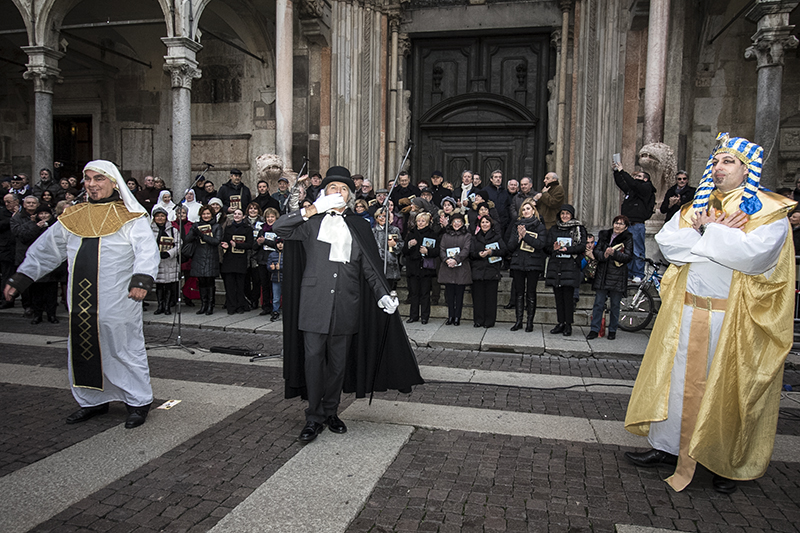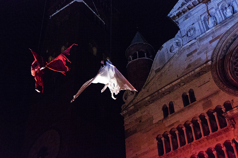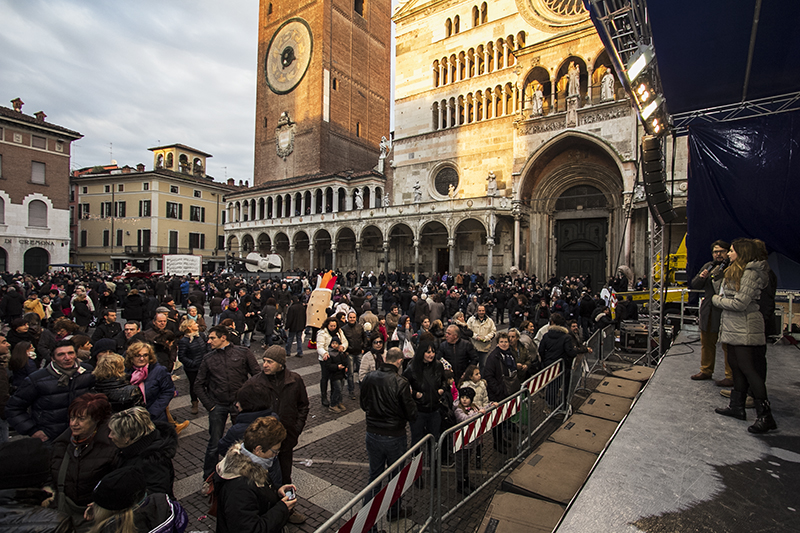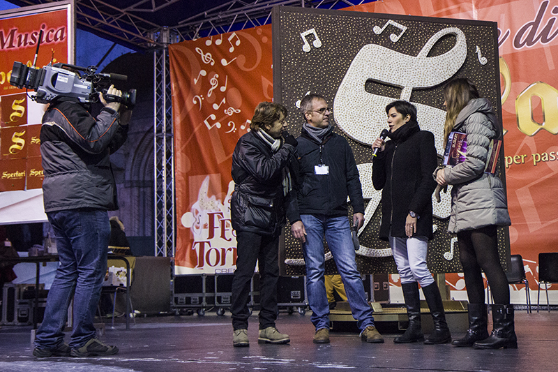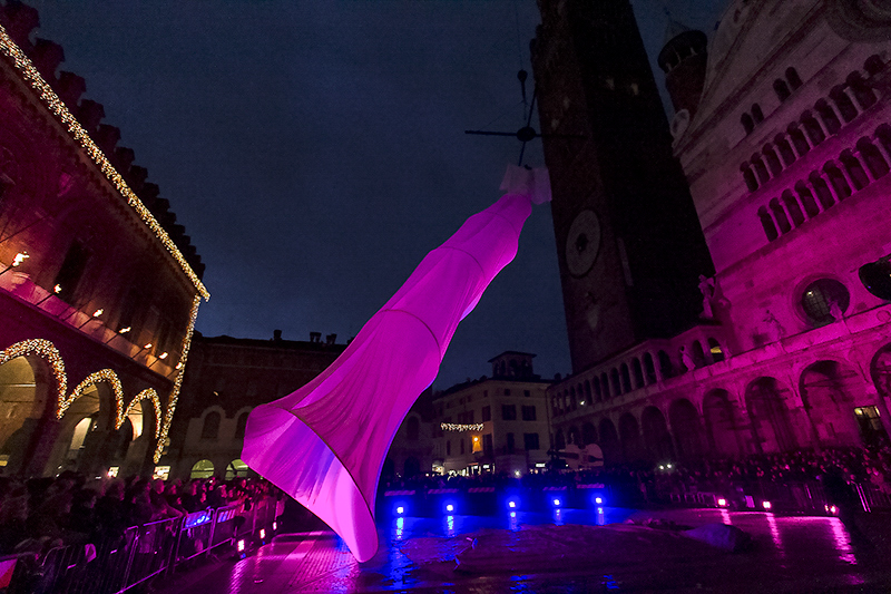 AGGIORNAMENTO – “Abbiamo vinto la sfida dei nove giorni”. Questo il commento di autorità, sponsor ed organizzatori dal palco di piazza del Comune alla fine della Festa del Torrone 2013, quest’anno in versione ‘big’ (dal 16 al 24 novembre). Il tempo ha favorito il grande afflusso di turisti e appassionati del tipico dolce di Cremona. “80mila i partecipanti nel secondo weekend. 60 tonnellate di torrone venduto”, dice Stefano Pellicciardi, responsabile della società organizzatrice (Sgp Eventi), prima dell’evento clou della manifestazione: lo spettacolo finale dal titolo ‘La Musa della Musica’. Una lunghissima e bianca figura nei cieli di Cremona, eleganti danzatori sui trampoli, hanno dato vita ad uno spettacolo suggestivo che ha voluto riproporre un vero e proprio viaggio nella musica. Lo show, seguito, filmato e fotografato dai moltissimi spettatori, è stato realizzato dalla Compagnia dei folli.