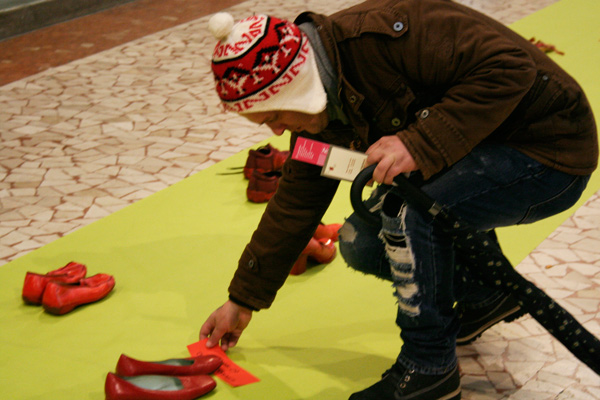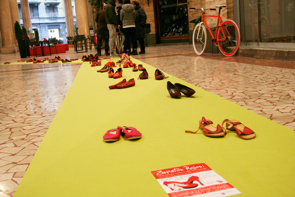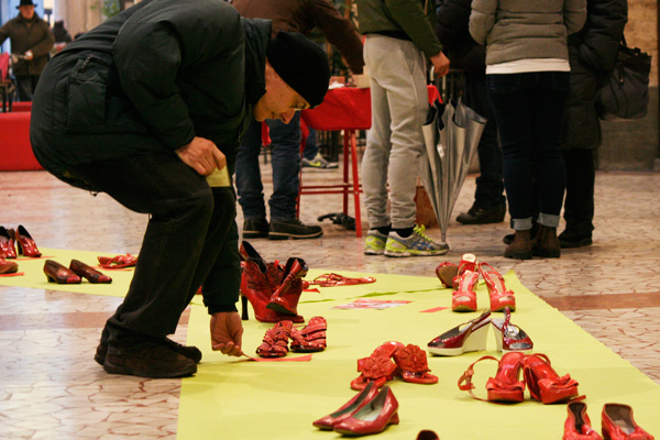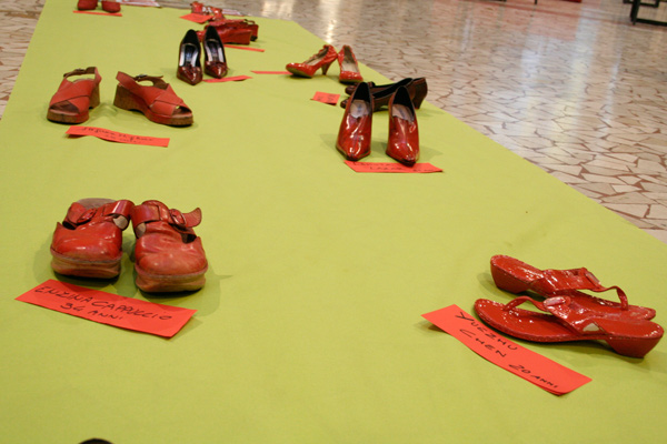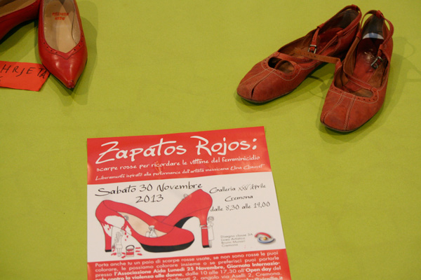 Scarpe rosse in Galleria. E’ l’iniziativa dell’Associazione A.I.D.A. onlus (Associazione Incontro Donne Antiviolenza), in collaborazione con il Comune di Cremona. Una performance liberamente ispirata ad un idea dell’artista messicana Elina Chauvet per ricordare tutte le donne che sono state uccise e quelle che hanno subito o ancora subiscono violenza. Su un tappeto verde tante scarpe rosse da donna quanto il numero di donne uccise per mano di un uomo nel corso del 2012-2013 in Italia. Accanto alle scarpe, collocate dai cittadini che hanno aderito all’iniziativa, tanti foglietti con indicati i nomi delle donne uccise e l’età. C’è Boshti Hrjeta di 36 anni, c’è Tommasina Ugolotti di 77 anni, Enzina Cappuccio di 34, Yuezhu Chen di 20 anni. E tante altre. ‘Zapatos rojos’ per ricordare le tante, troppe, vittime del femminicidio.