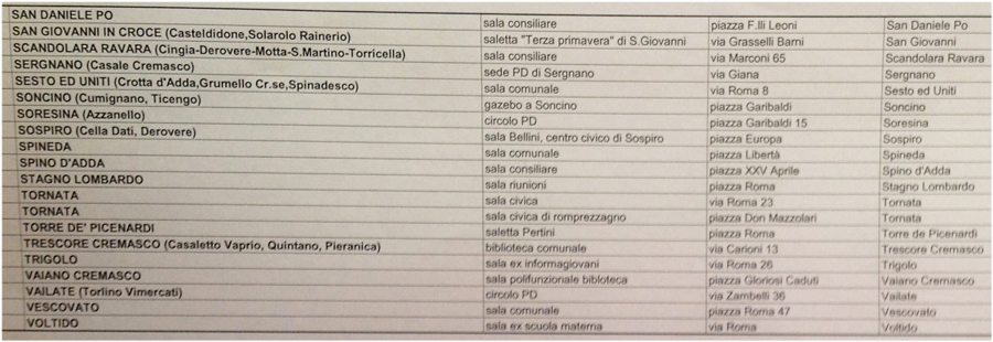 | 70-71 | Cavatigozzi | sala civica | via Abbadia 26 |