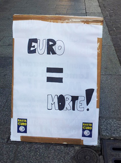 'Euro uguale morte' Gazebo leghista in corso Campi