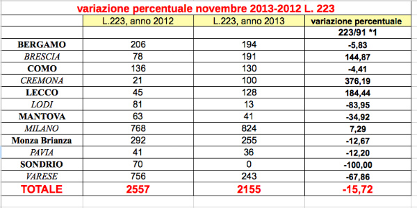 A Cremona si registra un boom di licenziamenti: rispetto al novembre del 2012, in cui i licenziati erano a quota 21, al novembre 2013 sono ben 100 coloro che hanno perso il lavoro, con una variazione del 376%. Il dato, diramato dall’Inps, è decisamente preoccupante e fotografa una situazione tutt’altro che rosea.