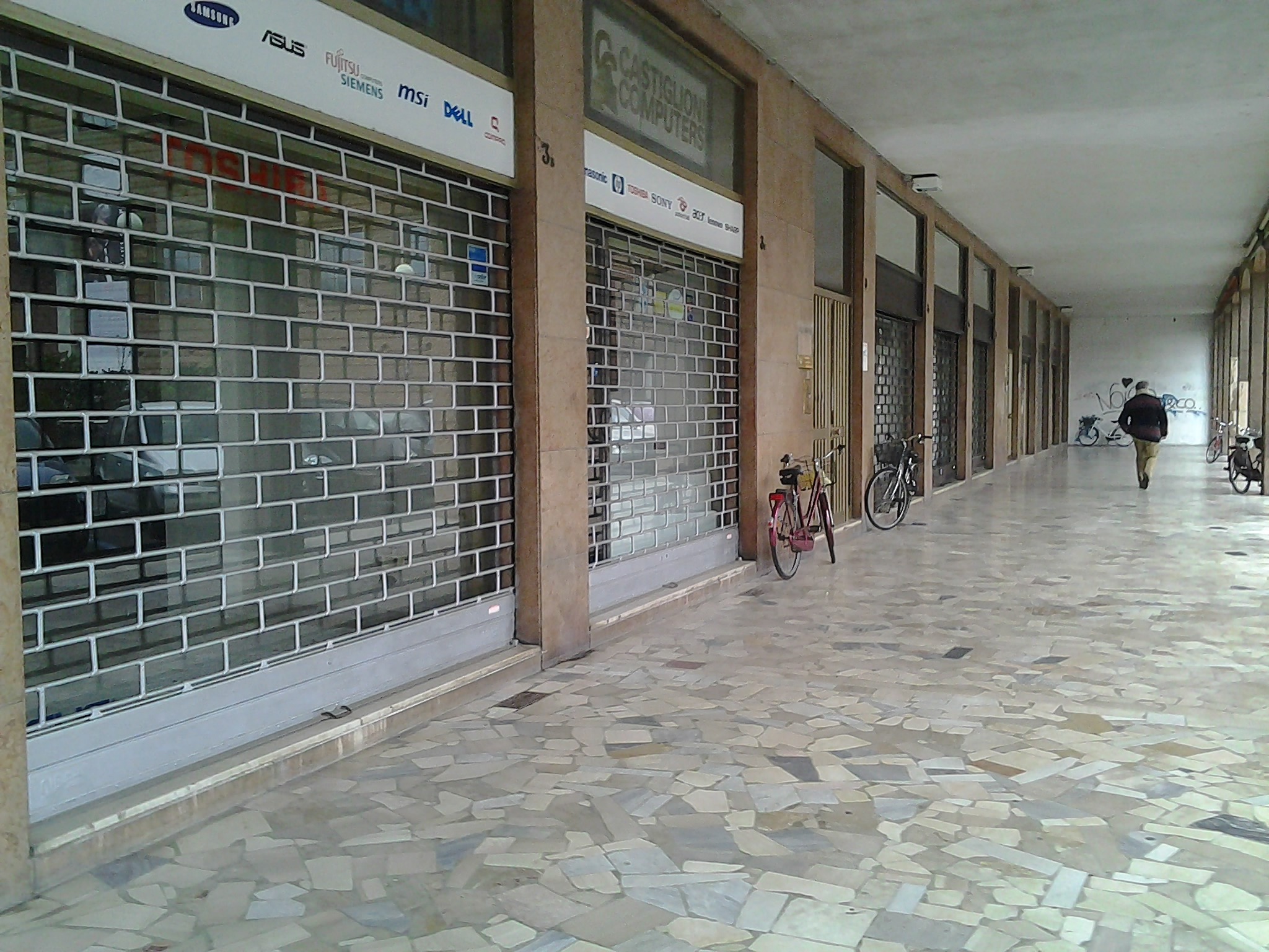 Il cuore commerciale del centro storico di Cremona batte sempre più lentamente. Se corso Garibaldi si sta svuotando poco alla volta dei suoi negozi, infatti, piazza Marconi non è da meno: complice anche il decennio di chiusura della piazza – che ha preceduto la realizzazione del parcheggio e del museo -, i negozi sono andati via via chiudendo tutti, lasciando un portico quasi completamente vuoto, se si escludono i bar e poco altro. Resta una desolazione di saracinesche abbassate tristi e poco accattivanti.
