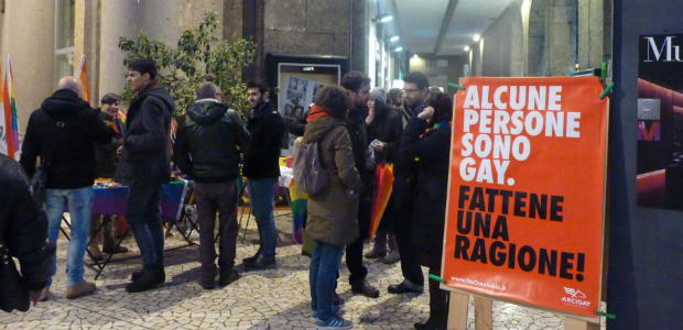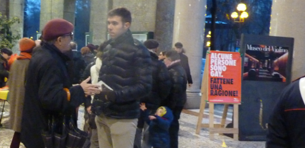 Simultaneamente in Galleria XXV aprile, Arcigay si è data appuntamento con un banchetto e vendita di gadget per sottolineare la validità della stessa legge e iniziare una raccolta firme per sensibilizzare il prossimo governo alla guida della città a istituire, come a Crema, un registro delle unioni civili. Gabriele Piazzoni, presidente provinciale Arcigay, spiega il carattere apartitico della manifestazione e il senso del registro unioni civili, che va al di là del significato simbolico e assume connotati molto concreti: in tutti gli atti amministrativi deputati al Comune le coppie omosessuali vengono equiparate a quelle etero. Così nell’assegnazione delle case popolari, ad esempio. Attorno al banco dell’Arcigay molti simpatizzanti e alcuni politici: tra gli altri, Paolo Carletti, candidato alle primarie del centrosinistra per il Psi e suo segretario provinciale; Gigi Rotelli e Luca Burgazzi del Pd.