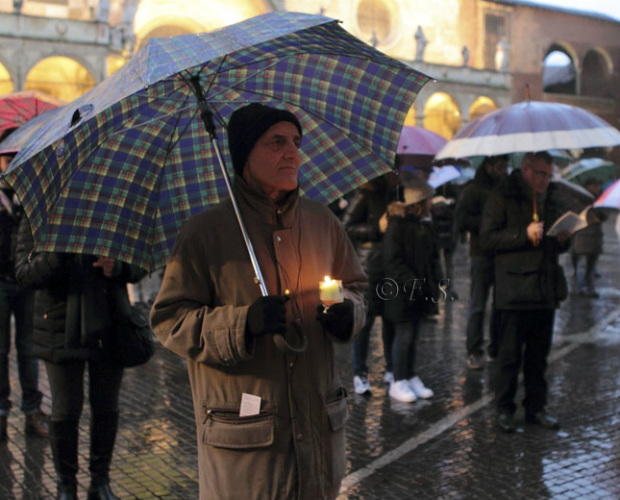 Trecento persone, sotto una pioggia scrosciante, quasi nessuna proveniente da fuori provincia e molte di città, hanno aderito domenica pomeriggio alla veglia in piazza del Duomo promossa dal gruppo delle “Sentinelle in piedi”, contro la teoria “gender” insita nella legge Scalfarotto contro l’omofobia, da poco approvata dalla Camera dei Deputati. Una manifestazione silenziosa e ordinata che si è svolta nonostante il maltempo e che per la prima volta arrivava a Cremona, dopo essere stata organizzata in varie città italiane. Tutti in piedi, bambini compresi, diligentemente in fila con le spalle voltate alla Cattedrale, leggendo un libro o tenendo in mano un lumino. Rigorosamente vietati dagli organizzatori simboli di movimenti (anche ecclesiastici), simboli religiosi e tantomeno politici. Mescolato nelle file anche il presidente della Provincia Massimiliano Salini e il consigliere regionale Carlo Malvezzi.