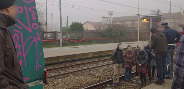 In alto un momento dell’occupazione dei binari in una foto postata su Facebook