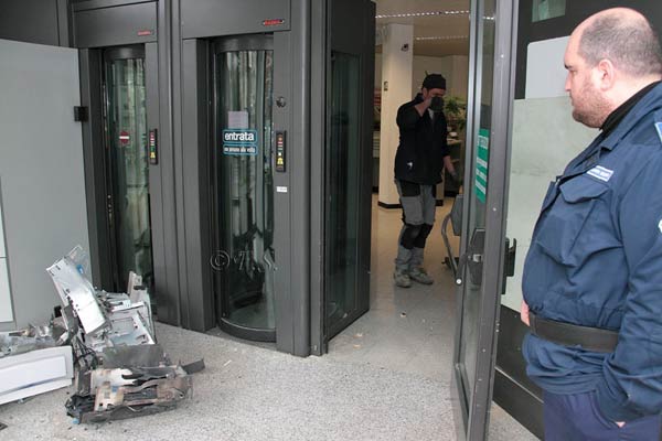 E’ la terza volta che si verifica un episodio simile nel giro di un anno e mezzo: una volta era stato solo un tentativo, un’altra volta l’esplosione aveva distrutto anche buona parte della filiale. In questo caso ad esser stato danneggiato – in maniera irreparabile – è solo il bancomat, oltre alla stanzetta che lo ospita. I malviventi si sarebbero introdotti nell’area che ospita l’apparecchio utilizzando una tessera magnetica qualsiasi, per poi agire indisturbati. Grande la rabbia del direttore, che è stato chiamato in piena notte dalle Forze dell’ordine. “E’ già successo altre due volte, la rabbia e la preoccupazione sono forti – racconta -. Ora stiamo cercando di quantificare il danno e il bottino. I nostri tecnici stanno cercando di aprire l’apparecchio, che è ridotto ad un ammasso di lamiere”.