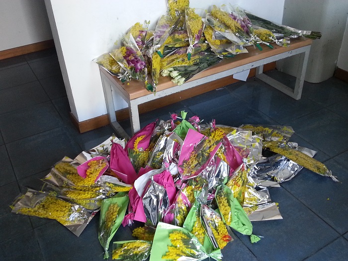 Nelle foto, mazzi di mimose sequestrati dai vigili