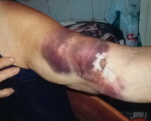 Aggredita dal pitbull, per l'anziana ecchimosi al braccio: ecco le foto