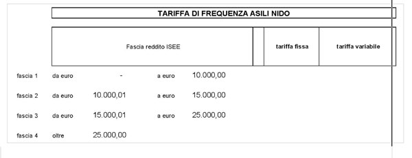 La proposta nasce dalla sperimentazione realizzata quest’anno con il fondo a sostegno delle famiglie con genitori lavoratori uno strumento che ha rappresentato, per l’anno in corso, un intervento di sollievo per le famiglie nelle quali tutti e due i genitori sono occupati (e anche per le famiglie monogenitoriali in cui è occupato l’unico genitore) e che presentano un Isee non superiore a 20.000 euro. L’accesso al fondo consentiva di abbattere la retta dovuta per la frequenza all’asilo nido, la fruizione del fondo è stata molto alta, tanto che circa il 60% degli attuali iscritti al nido beneficia del fondo. Considerato l’ampio utilizzo di questo strumento, per il prossimo anno si è ritenuto di ridefinire le tariffe con l’eliminazione del fondo e l’adeguamento della tariffa per questo tipo di famiglie. L’intento è quello di agevolare le coppie che lavorano facilitandone l’accesso al servizio. Pertanto, in linea di massima, la tariffa minima sarà di 100 euro per la parte fissa +150 per la parte variabile (l’attuale è di 200+150 euro), legata agli effettivi giorni di frequenza, mentre la massima sarà di 400 euro per la parte fissa +150 per quella variabile (rispetto agli attuali 600+150 euro), mentre le fasce passeranno da sei a quattro. Parallelamente, verranno riviste anche le tariffe per le famiglie con redditi più elevati, accorpando verso il basso le ultime due fasce.