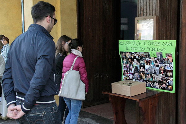 Chiesa gremita per l’ultimo saluto a Valentina Viero, la giovane veterinaria deceduta tragicamente sulla Paullese nella notte tra martedì e mercoledì, dopo essere finita con l’auto in un fosso, e ritrovata senza vita la mattina di mercoledì. In tanti oggi, così come accaduto per la veglia di preghiera di venerdì sera, hanno raggiunto la chiesa della Beata Vergine di Caravaggio, in viale Concordia, nei pressi dell’Ospedale di Cremona. E’ qui che attorno alle 10 di lunedì è iniziato il funerale di Valentina. Grande il dolore di familiari, amici e conoscenti. Moltissimi i ragazzi presenti in chiesa per il rito funebre. Comparsi alcuni striscioni fuori dalla chiesa, con messaggi come questi: “Ciao Valentina”, “Ciao Vale… Nostro sorriso”, “Troppo presto 6 volata via, ciao piccolo angelo” (quest’ultima frase su sfondo grigiorosso). Qualcuno ha indossato magliette con la fotografia di Valentina. E c’è stato anche spazio per la grande passione della ragazza, gli animali (un amore, quello per gli animali, che ha caratterizzato pure le ultime ore di Vale: la giovane veterinaria tornava da una riunione di lavoro a Crema al momento dell’incidente). Questa mattina, fuori dalla chiesa, era presente un cartellone verde con tante fotografie di Valentina. Sopra il cartellone una frase a pennarello: “Sei stata, sei e sempre sarai il nostro sorriso”. Vicino al cartellone, un banchetto con una scatola di cartone in cui poter inserire, come scritto sopra, una “offerta per gli amici a quattro zampe della Vale”. Un’idea, questa, che Valentina avrebbe sicuramente apprezzato.