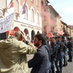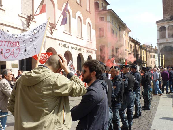 Qualche momento di tensione si è visto all’arrivo in piazza della coda del corteo, composto dagli antagonisti dei centri sociali e del Comitato antisfratto, che hanno lanciato fumogeni rossi, inneggiando il diritto alla casa e il loro “no” alle politiche sociali che consentono i distacchi delle utenze.