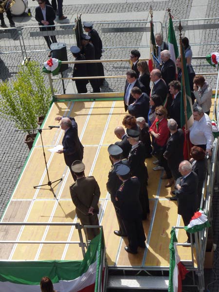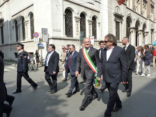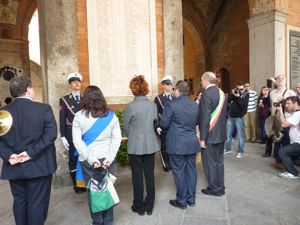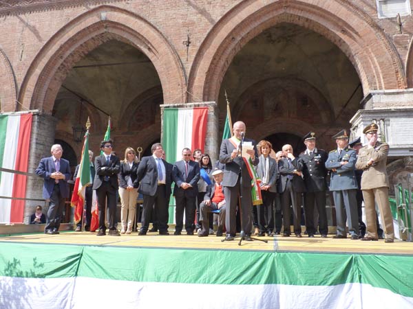 In vece del presidente della Provincia Massimiliano Salini, sul palco era presente l’assessore Chiara Capelletti, ma a prendere la parola per conto delle autorità è stato solo il sindaco Oreste Perri. “L’attualità e l’importanza della festa che oggi celebriamo stanno anche nell’impegno a non dimenticare, a far si che la politica sia la pratica di occuparsi costruttivamente della propria comunità, per il bene collettivo, soprattutto in una situazione di crisi economica e sociale grave” ha detto il sindaco dal palco allestito in piazza Duomo, schierato insieme agli altri amministratori. “E’ necessario recuperare il senso di un’autentica solidarietà e coesione alla tutela dei più deboli, come seppero fare allora le formazioni partigiane” ha ricordato il sindaco.
