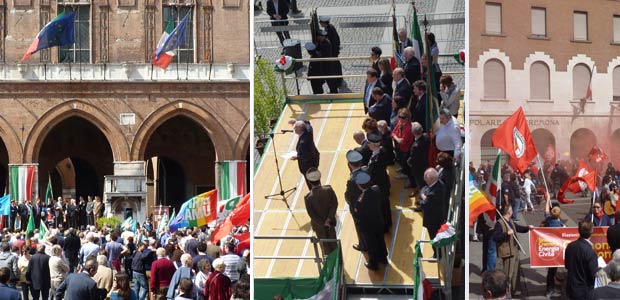 I centri sociali, dal canto loro, ribadiscono di essersi allontanati volutamente dal corteo ufficiale, in segno di protesta, come già avevano annunciato in un comunicato nei giorni scorsi, in cui attaccavano pesantemente le istituzioni: “In occasione del 69° anniversario della Liberazione dell’Italia dal nazi-fascismo saremo in piazza non solo per commemorare la lotta partigiana ma per attualizzare questa lotta nel nostro tempo dove tanto c’è ancora da lottare. Oggi come allora ci troviamo a dover lottare contro molte ingiustizie, per il diritto alla casa, al salario, all’istruzione, dalla lotta al razzismo alla difesa dei beni comuni e alla difesa delle nostre città dall’insorgere di partiti e associazioni neofasciste e xenofobe. Le stesse Istituzioni che pronunceranno il loro discorso alla città sul palco, il sindaco Perri e il presidente Salini, hanno calpestato, per tutto il corso della propria legislatura, i valori della resistenza! Queste persone si sono arrogate una piazza che non gli appartiene e che certamente non desidera, ne tantomeno merita, sentirli infangare e calpestare quegli ideali che hanno spinto i nostri partigiani a combattere anche a costo delle loro vite contro l’arroganza nazi-fascista! Una piazza nella quale non ci riconosciamo, una piazza morta, retorica e delegittimata nella propria funzione da tutti quei soggetti (famiglie in difficoltà, studenti, migranti, precari etc..) che negli ultimi anni, giorno dopo giorno, hanno lottato non solo per il diritto alla casa, all’istruzione e ad un salario garantito, ma anche e soprattutto per riappropriarsi della dignità che queste politiche criminali ci sottraggono sempre più nel tentativo continuo di umiliarci e farci soffrire la nostra condizione sociale. Per questo reputiamo centrale non ascoltare le fandonie che diranno (che smentiscono quotidianamente con la loro pratica politica) ed abbandonare quella piazza mefitica nel tentativo di costruirne un’altra: meticcia, ricca di contenuti, progettualità politica ed in grado di esprimere una socialità altra che superi tutte le fesserie istituzionali volta invece alla ricomposizione di classe”.