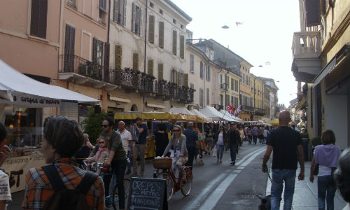 Il centro città delle grandi occasioni, quelle che capitano sempre più di rado, in tempi in cui i grandi eventi pubblici non sono quasi più possibili a Cremona. Da oggi e per altri due giorni fino a domenica 11, corso Campi e corso Garibaldi diventano veramente isola pedonale, con l’esposizione del Mercato Europeo, per la terza volta in città. Oltre cinquanta banchi, con prodotti tipici di mezza Europa, alimentari (gli stand più gettonati), dell’abbigliamento e dei prodotti tipici. Profumi di lavanda e aromi culinari si accavallano in questo bazar che percorre tutto corso Campi, corso Garibaldi, fino a piazza Cittanova, dove si trovano le tavolate della ristorazione. Gli operatori provengono per l’80% dagli effettivi Paesi dichiarati: Scozia, Germania, Belgio, Grecia, Spagna, tanto per fare qualche esempio.