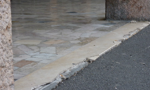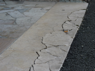 AGGIORNAMENTO – Ancora problemi per piazza Marconi, lungo il tratto che costeggia i portici del condominio. Il lastricato di marmo che segna il confine tra la parte coperta del passaggio pedonale e quella esterna è stato lesionato in più punti, in alcuni è letteralmente sbriciolato e sono tornate le infiltrazioni nelle cantine condominiali sottostanti. Il danneggiamento infatti ha intaccato anche il manto isolante rifatto appena qualche anno fa.