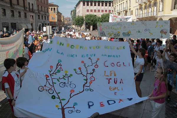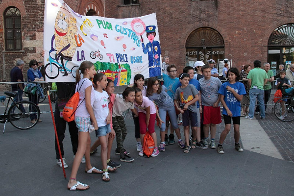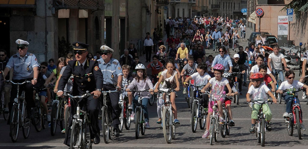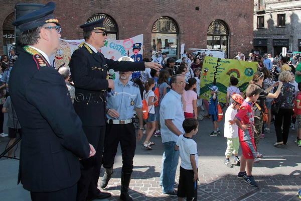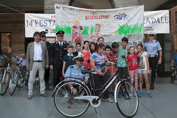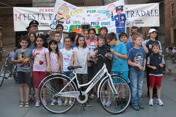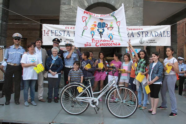 La giornata è iniziata in piazza Stradivari, con una biciclettata che ha visto coinvolti i bambini, i loro genitori e gli insegnanti, insieme agli agenti della polizia municipale. Il corteo ha girato nelle vie del centro storico, per tornare poi in piazza Stradivari, dove sono stati premiati i tre striscioni più belli. Per l’occasione erano presenti il sindaco Oreste Perri, l’assessore alla Polizia Locale Francesco Bordi, il comandante della Polizia Municipale Fabio Germanà Ballarino e il vice comandante, responsabile del progetto, Pierluigi Sforza.