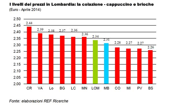 Analizzando singole voci, emerge però che sotto il Torrazzo una colazione costa più che nel resto della Lombardia (2,44 euro, contro il 2,34 lombardo), mentre il pranzo in pizzeria è tra quelli meno costosi (8,99 euro di media, contro il 9,46 lombardo).
